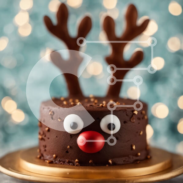 Intra Συλλεκτικό Ξύλινο Παζλ Plywood 4mm – Κέικ σοκολάτας με κέρατα ταράνδου και κόκκινες μύτες Σε Ξύλινο Κουτί – Διαστάσεις: 10×10 cm – 25 κομμάτια