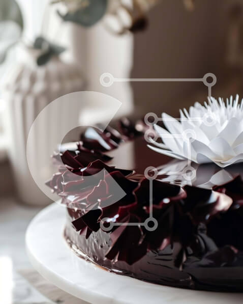 Intra Συλλεκτικό Ξύλινο Παζλ Plywood 4mm – Κέικ σοκολάτας με λευκά λουλούδια σε οβάλ πιάτο Σε Ξύλινο Κουτί – Διαστάσεις: 10×10 cm – 25 κομμάτια