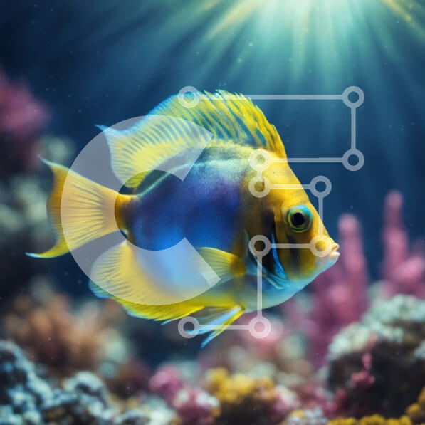 Intra Συλλεκτικό Ξύλινο Παζλ Plywood 4mm – Κίτρινα και μπλε ψάρια που κολυμπούν στον κοραλλιογενή ύφαλο Σε Ξύλινο Κουτί – Διαστάσεις: 10×10 cm – 25 κομμάτια