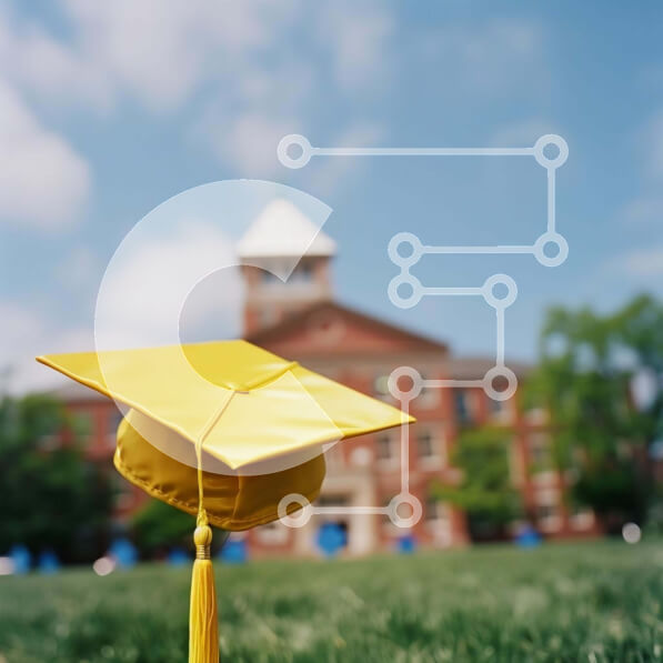 Intra Συλλεκτικό Ξύλινο Παζλ Plywood 4mm – Κίτρινο καπέλο αποφοίτησης μπροστά από το εντυπωσιακό κτίριο Σε Ξύλινο Κουτί – Διαστάσεις Puzzle: 10×10 cm – 25 κομμάτια
