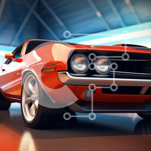 Intra Συλλεκτικό Ξύλινο Παζλ Plywood 4mm – Καλοσυντηρημένο Orange Muscle Car στο γκαράζ Σε Ξύλινο Κουτί – Διαστάσεις Puzzle: 10×10 cm – 25 κομμάτια