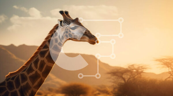 Intra Συλλεκτικό Ξύλινο Παζλ Plywood 4mm – Καμηλοπάρδαλη σε ένα χορταριασμένο χωράφι με θέα στο ηλιοβασίλεμα Σε Ξύλινο Κουτί – Διαστάσεις: 10×10 cm – 25 κομμάτια