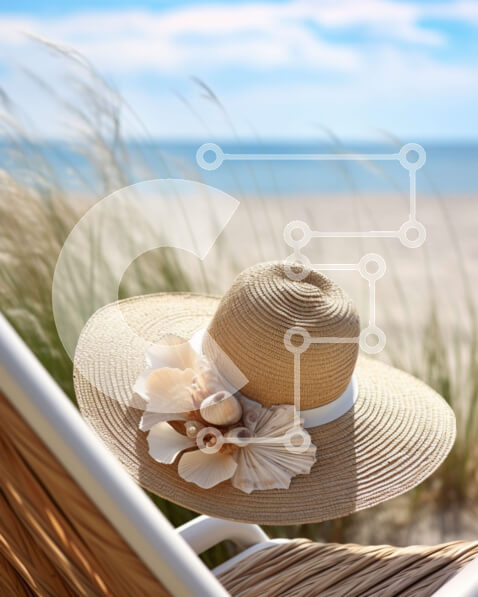 Intra Συλλεκτικό Ξύλινο Παζλ Plywood 4mm – Καρέκλα παραλίας και ομπρέλα με κοχύλια και ψάθινο καπέλο Σε Ξύλινο Κουτί – Διαστάσεις Puzzle: 10×10 cm – 25 κομμάτια