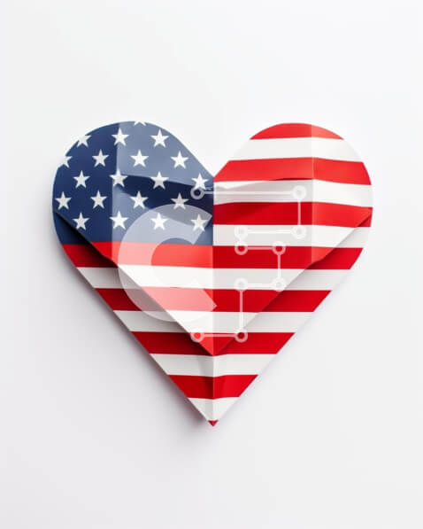 Intra Συλλεκτικό Ξύλινο Παζλ Plywood 4mm – Καρδιά Origami σε σχήμα όπως η αμερικανική σημαία σε λευκό φόντο Σε Ξύλινο Κουτί – Διαστάσεις Puzzle: 10×10 cm – 25 κομμάτια