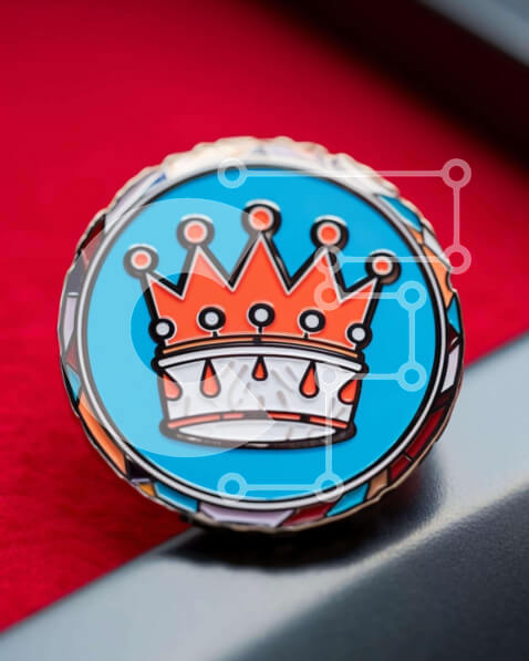 Intra Συλλεκτικό Ξύλινο Παζλ Plywood 4mm – Καρφίτσα πέτο σε σχήμα κορώνας σε πορτοκαλί και μπλε φόντο Σε Ξύλινο Κουτί – Διαστάσεις: 10×10 cm – 25 κομμάτια