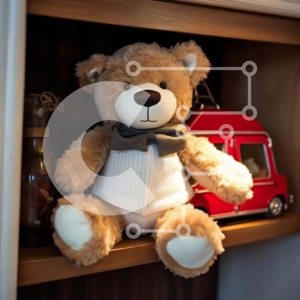 Intra Συλλεκτικό Ξύλινο Παζλ Plywood 4mm – Καφέ αρκουδάκι και κόκκινο φορτηγό στο ράφι Σε Ξύλινο Κουτί – Διαστάσεις: 10×10 cm – 25 κομμάτια