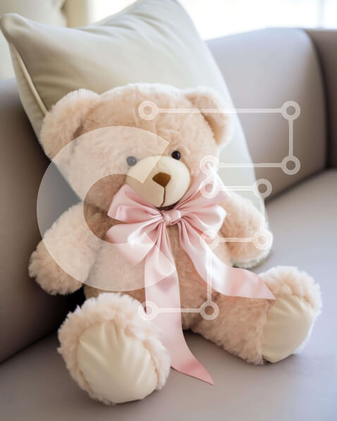 Intra Συλλεκτικό Ξύλινο Παζλ Plywood 4mm – Καφέ αρκουδάκι με ροζ φιόγκο που κάθεται στον καναπέ Σε Ξύλινο Κουτί – Διαστάσεις: 10×10 cm – 25 κομμάτια