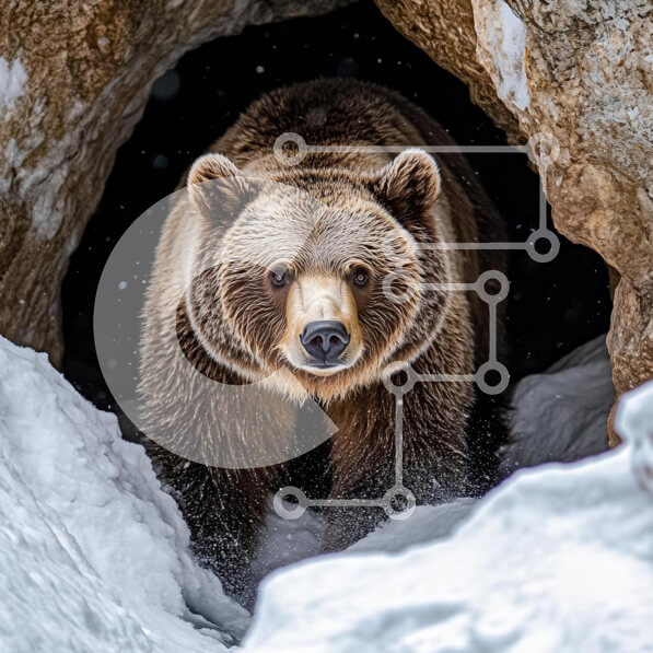 Intra Συλλεκτικό Ξύλινο Παζλ Plywood 4mm – Καφέ αρκούδα που αναδύεται από το Snowy Cave Σε Ξύλινο Κουτί – Διαστάσεις: 10×10 cm – 25 κομμάτια
