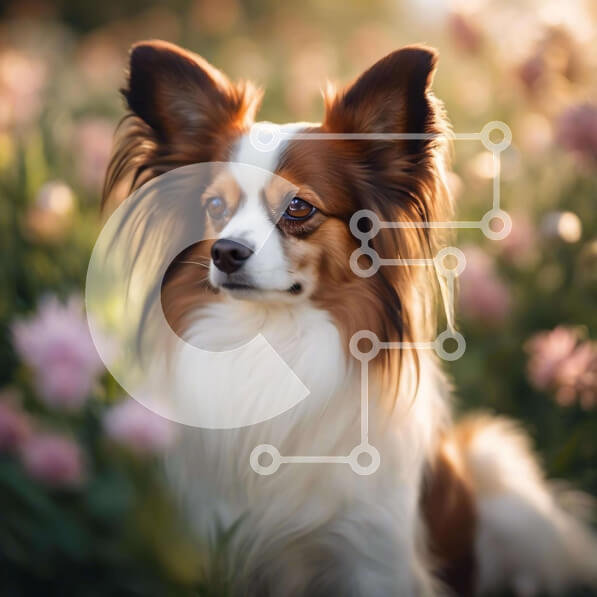 Intra Συλλεκτικό Ξύλινο Παζλ Plywood 4mm – Καφέ και λευκό σκυλί ανάμεσα στα λουλούδια Σε Ξύλινο Κουτί – Διαστάσεις: 10×10 cm – 25 κομμάτια