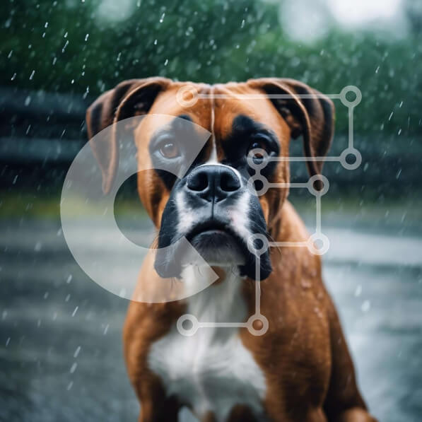 Intra Συλλεκτικό Ξύλινο Παζλ Plywood 4mm – Καφέ και λευκό σκυλί μπόξερ που κάθεται στη βροχή Σε Ξύλινο Κουτί – Διαστάσεις: 10×10 cm – 25 κομμάτια