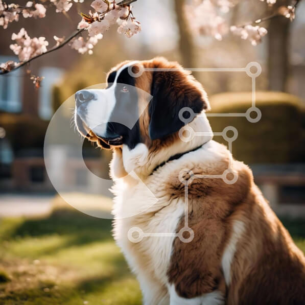 Intra Συλλεκτικό Ξύλινο Παζλ Plywood 4mm – Καφέ και λευκό σκυλί St. Bernard κάτω από το δέντρο πορτοκαλιάς Σε Ξύλινο Κουτί – Διαστάσεις: 10×10 cm – 25 κομμάτια