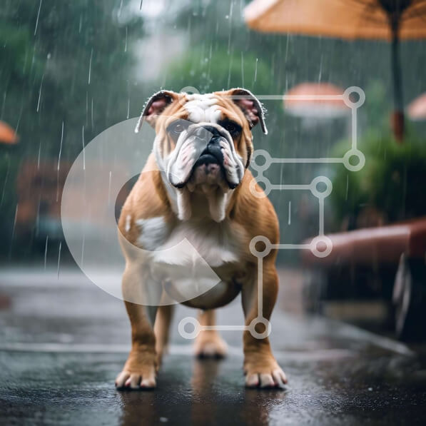 Intra Συλλεκτικό Ξύλινο Παζλ Plywood 4mm – Καφέ και λευκό μπουλντόγκ που περιμένει στη βροχή Σε Ξύλινο Κουτί – Διαστάσεις: 10×10 cm – 25 κομμάτια