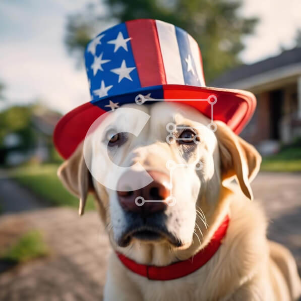 Intra Συλλεκτικό Ξύλινο Παζλ Plywood 4mm – Καφέ και λευκό σκυλί με καπέλο με θέμα την αμερικανική σημαία Σε Ξύλινο Κουτί – Διαστάσεις: 10×10 cm – 25 κομμάτια