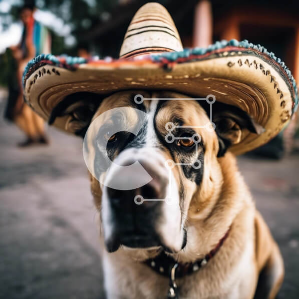 Intra Συλλεκτικό Ξύλινο Παζλ Plywood 4mm – Καφέ και λευκός σκύλος που φορά μεξικάνικο καπέλο σομπρέρο Σε Ξύλινο Κουτί – Διαστάσεις: 10×10 cm – 25 κομμάτια