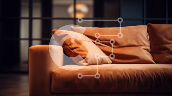 Intra Συλλεκτικό Ξύλινο Παζλ Plywood 4mm – Καφέ καναπές με μαξιλάρια σε δωμάτιο με χαμηλό φωτισμό Σε Ξύλινο Κουτί – Διαστάσεις Puzzle: 10×10 cm – 25 κομμάτια