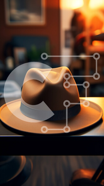 Intra Συλλεκτικό Ξύλινο Παζλ Plywood 4mm – Καφέ καπέλο σε ξύλινο γραφείο με φορητό υπολογιστή και θέα στο ηλιοβασίλεμα Σε Ξύλινο Κουτί – Διαστάσεις: 10×10 cm – 25 κομμάτια