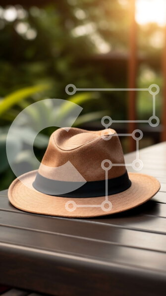 Intra Συλλεκτικό Ξύλινο Παζλ Plywood 4mm – Καφέ καπέλο σε ξύλινο τραπέζι με πράσινο φόντο Σε Ξύλινο Κουτί – Διαστάσεις: 10×10 cm – 25 κομμάτια