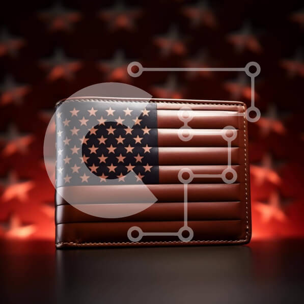 Intra Συλλεκτικό Ξύλινο Παζλ Plywood 4mm – Καφέ πορτοφόλι με σχέδιο αμερικανικής σημαίας και πατριωτικά αστέρια Σε Ξύλινο Κουτί – Διαστάσεις: 10×10 cm – 25 κομμάτια