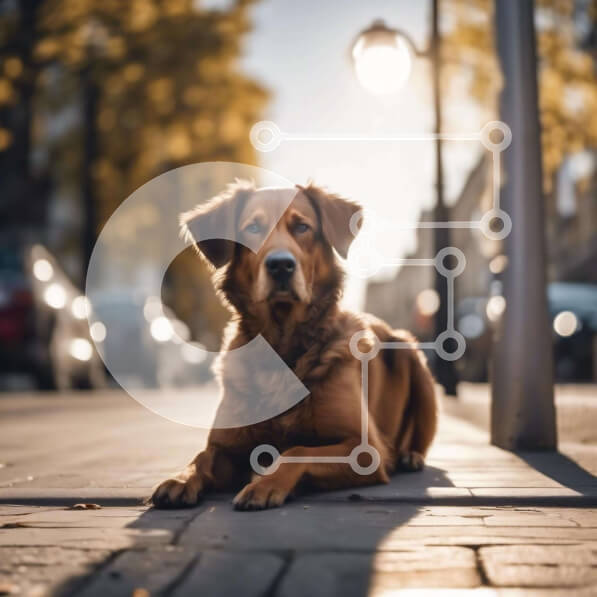 Intra Συλλεκτικό Ξύλινο Παζλ Plywood 4mm – Καφέ σκυλί που ξεκουράζεται στο πεζοδρόμιο σε αστικό περιβάλλον Σε Ξύλινο Κουτί – Διαστάσεις: 10×10 cm – 25 κομμάτια
