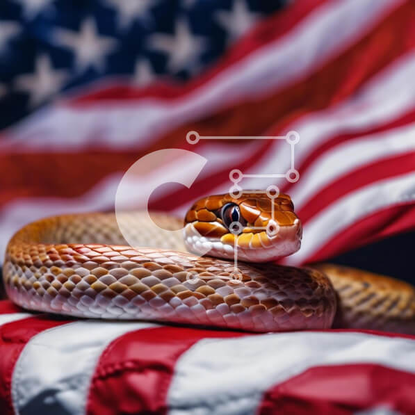 Intra Συλλεκτικό Ξύλινο Παζλ Plywood 4mm – Καφέ φίδι που στηρίζεται στην αμερικανική σημαία Σε Ξύλινο Κουτί – Διαστάσεις: 10×10 cm – 25 κομμάτια