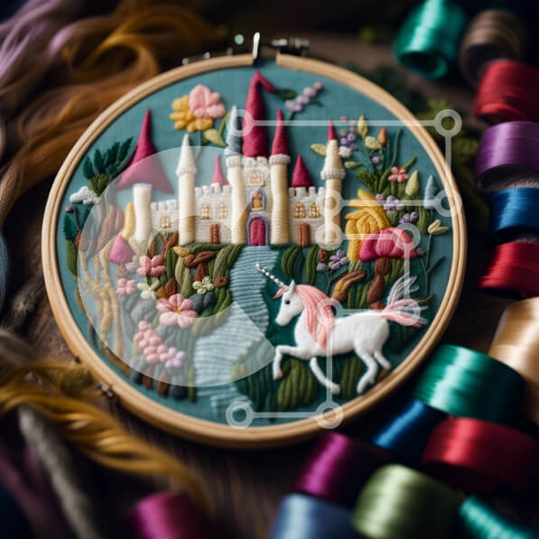 Intra Συλλεκτικό Ξύλινο Παζλ Plywood 4mm – Κεντημένο Κάστρο με Μονόκερο σε Ξύλινο Στεφάνι – Πολύχρωμο Έργο Τέχνης Σε Ξύλινο Κουτί – Διαστάσεις Puzzle: 10×10 cm – 25 κομμάτια