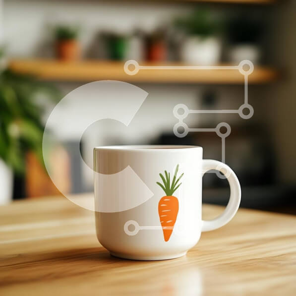 Intra Συλλεκτικό Ξύλινο Παζλ Plywood 4mm – Κεραμική κούπα με σχέδιο καρότο σε ξύλινο τραπέζι Σε Ξύλινο Κουτί – Διαστάσεις: 10×10 cm – 25 κομμάτια