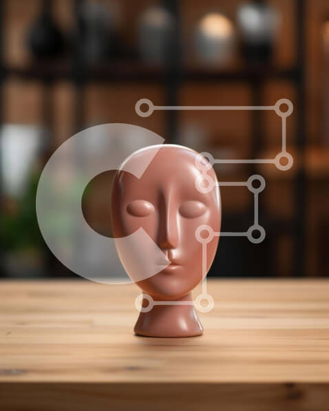 Intra Συλλεκτικό Ξύλινο Παζλ Plywood 4mm – Κεραμικό γλυπτό κεφαλής σε ξύλινο τραπέζι Σε Ξύλινο Κουτί – Διαστάσεις Puzzle: 10×10 cm – 25 κομμάτια