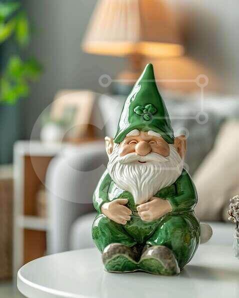 Intra Συλλεκτικό Ξύλινο Παζλ Plywood 4mm – Κεραμικό ειδώλιο Gnome σε ένα τραπέζι σε άνετο εσωτερικό Σε Ξύλινο Κουτί – Διαστάσεις: 10×10 cm – 25 κομμάτια