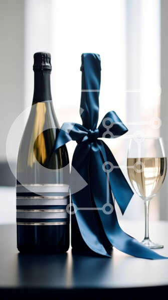 Intra Συλλεκτικό Ξύλινο Παζλ Plywood 4mm – Κομψά μπουκάλια κρασιού και ποτήρι με μπλε κορδέλα Σε Ξύλινο Κουτί – Διαστάσεις: 10×10 cm – 25 κομμάτια