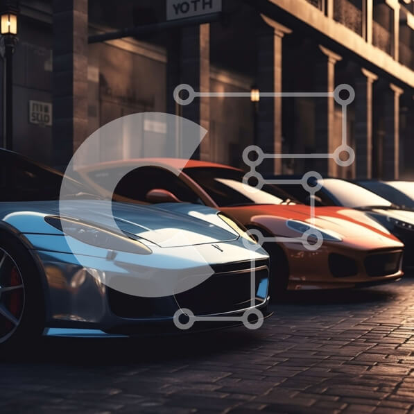Intra Συλλεκτικό Ξύλινο Παζλ Plywood 4mm – Κομψά σπορ αυτοκίνητα παρκαρισμένα στην City Street στο σούρουπο Σε Ξύλινο Κουτί – Διαστάσεις Puzzle: 10×10 cm – 25 κομμάτια