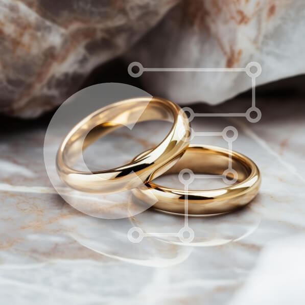 Intra Συλλεκτικό Ξύλινο Παζλ Plywood 4mm – Κομψές χρυσές βέρες σε μαρμάρινη επιφάνεια Σε Ξύλινο Κουτί – Διαστάσεις: 10×10 cm – 25 κομμάτια