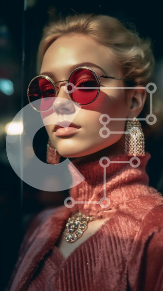 Intra Συλλεκτικό Ξύλινο Παζλ Plywood 4mm – Κομψή γυναίκα με ροζ πουλόβερ και κόκκινα γυαλιά ηλίου τη νύχτα Σε Ξύλινο Κουτί – Διαστάσεις Puzzle: 10×10 cm – 25 κομμάτια