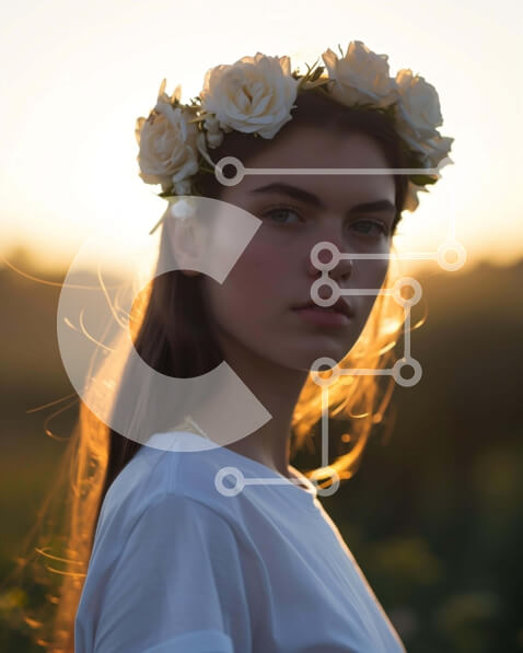 Intra Συλλεκτικό Ξύλινο Παζλ Plywood 4mm – Κομψή γυναίκα με floral στέμμα στο ηλιοβασίλεμα Σε Ξύλινο Κουτί – Διαστάσεις Puzzle: 10×10 cm – 25 κομμάτια