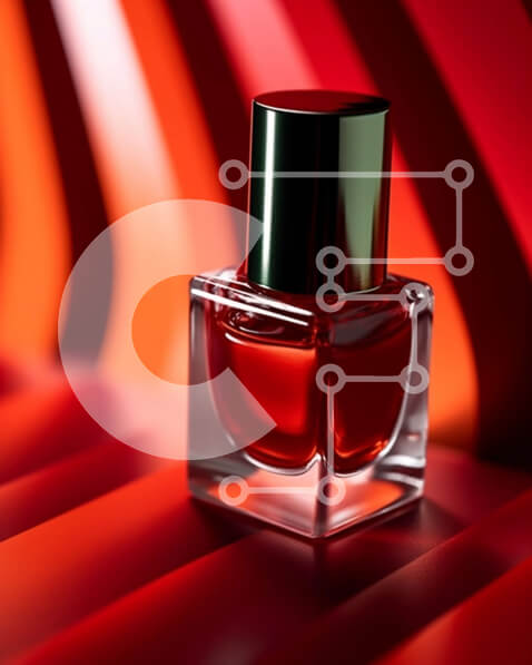 Intra Συλλεκτικό Ξύλινο Παζλ Plywood 4mm – Κομψή εικόνα κόκκινου βερνικιού νυχιών σε ριγέ φόντο Σε Ξύλινο Κουτί – Διαστάσεις Puzzle: 10×10 cm – 25 κομμάτια