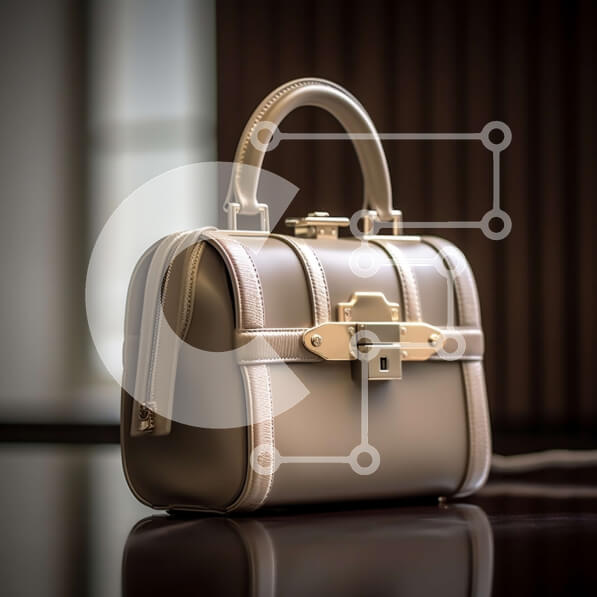 Intra Συλλεκτικό Ξύλινο Παζλ Plywood 4mm – Κομψή εικόνα μιας μπεζ τσάντας με χρυσές πινελιές σε ένα ξύλινο τραπέζι Σε Ξύλινο Κουτί – Διαστάσεις: 10×10 cm – 25 κομμάτια