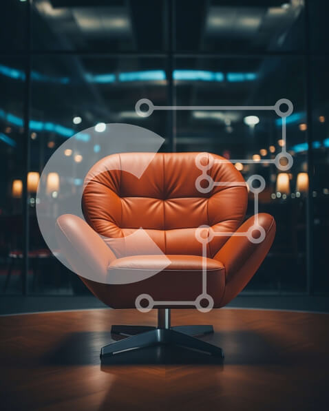 Intra Συλλεκτικό Ξύλινο Παζλ Plywood 4mm – Κομψή και μοντέρνα δερμάτινη καρέκλα σε ένα σκοτεινό δωμάτιο Σε Ξύλινο Κουτί – Διαστάσεις Puzzle: 10×10 cm – 25 κομμάτια