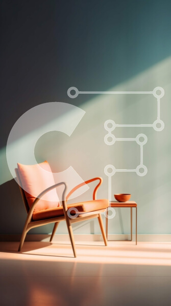 Intra Συλλεκτικό Ξύλινο Παζλ Plywood 4mm – Κομψή και μινιμαλιστική πορτοκαλί πολυθρόνα σε ένα φωτεινό, φιλόξενο δωμάτιο Σε Ξύλινο Κουτί – Διαστάσεις Puzzle: 10×10 cm – 25 κομμάτια