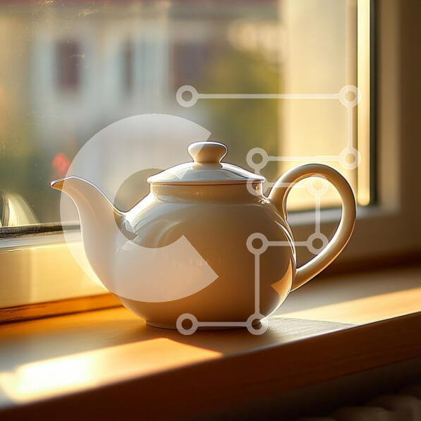 Intra Συλλεκτικό Ξύλινο Παζλ Plywood 4mm – Κομψή λευκή τσαγιέρα στο φως του ήλιου Σε Ξύλινο Κουτί – Διαστάσεις: 10×10 cm – 25 κομμάτια