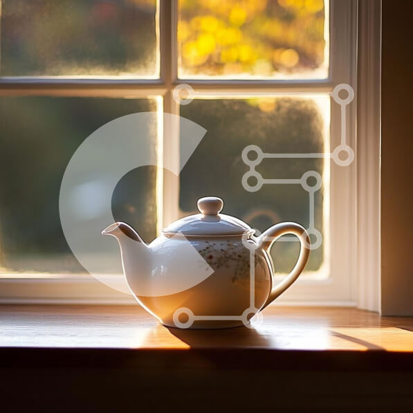 Intra Συλλεκτικό Ξύλινο Παζλ Plywood 4mm – Κομψή λευκή πορσελάνινη τσαγιέρα σε περβάζι Σε Ξύλινο Κουτί – Διαστάσεις: 10×10 cm – 25 κομμάτια