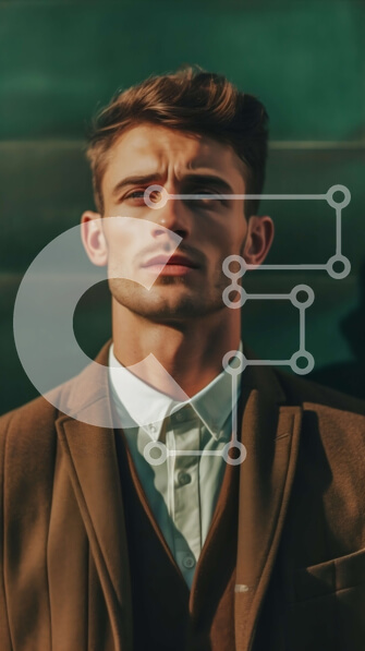 Intra Συλλεκτικό Ξύλινο Παζλ Plywood 4mm – Κομψός άνδρας που στέκεται με τα χέρια στις τσέπες κοιτάζοντας στην απόσταση Σε Ξύλινο Κουτί – Διαστάσεις Puzzle: 10×10 cm – 25 κομμάτια