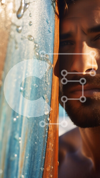 Intra Συλλεκτικό Ξύλινο Παζλ Plywood 4mm – Κομψός άνδρας με σανίδα του σερφ που απολαμβάνει τα κύματα Σε Ξύλινο Κουτί – Διαστάσεις Puzzle: 10×10 cm – 25 κομμάτια