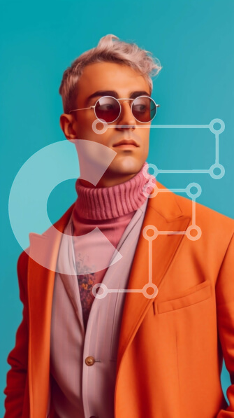 Intra Συλλεκτικό Ξύλινο Παζλ Plywood 4mm – Κομψός άντρας με πορτοκαλί μπουφάν και ροζ γυαλιά ηλίου Σε Ξύλινο Κουτί – Διαστάσεις Puzzle: 10×10 cm – 25 κομμάτια