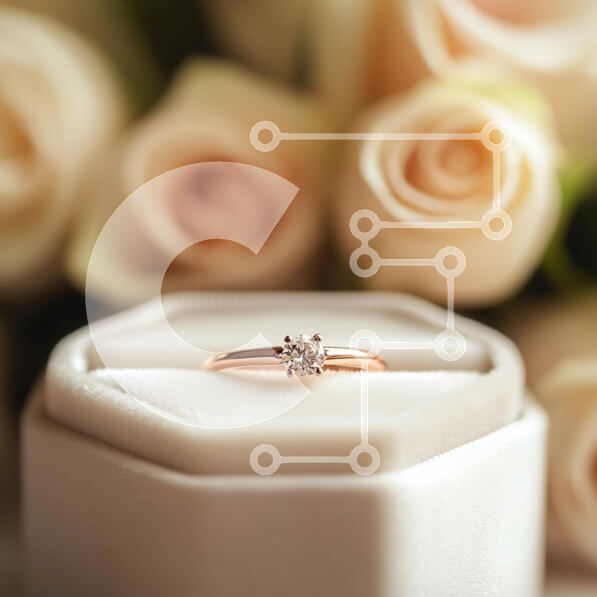 Intra Συλλεκτικό Ξύλινο Παζλ Plywood 4mm – Κομψό δαχτυλίδι αρραβώνων σε ροζ χρυσό σκηνικό με κρεμ τριαντάφυλλα Σε Ξύλινο Κουτί – Διαστάσεις: 10×10 cm – 25 κομμάτια