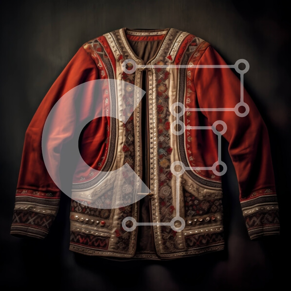 Intra Συλλεκτικό Ξύλινο Παζλ Plywood 4mm – Κομψό κόκκινο σακάκι με φλοράλ και γεωμετρικά κεντήματα Σε Ξύλινο Κουτί – Διαστάσεις: 10×10 cm – 25 κομμάτια