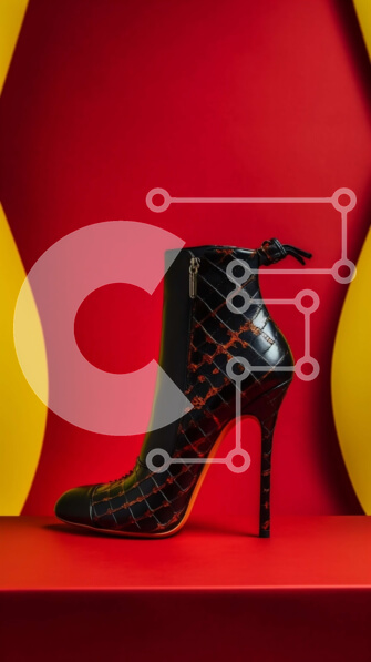 Intra Συλλεκτικό Ξύλινο Παζλ Plywood 4mm – Κομψό μαύρο ψηλοτάκουνο μποτάκι με γεωμετρικό σχέδιο Σε Ξύλινο Κουτί – Διαστάσεις Puzzle: 10×10 cm – 25 κομμάτια