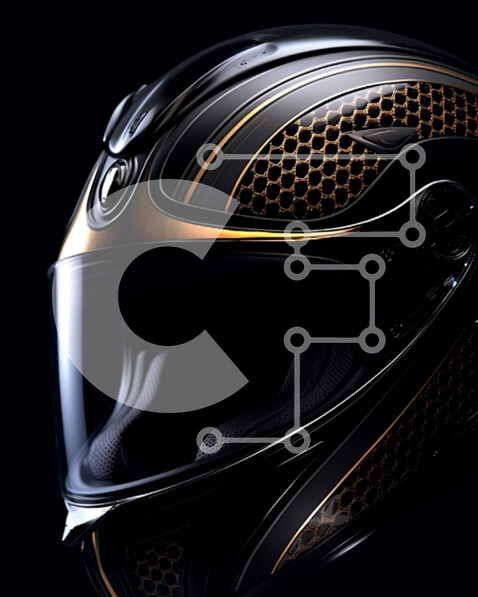 Intra Συλλεκτικό Ξύλινο Παζλ Plywood 4mm – Κομψό μαύρο και χρυσό κράνος μοτοσυκλέτας με λογότυπο με φτερωτό κρανίο Σε Ξύλινο Κουτί – Διαστάσεις Puzzle: 10×10 cm – 25 κομμάτια