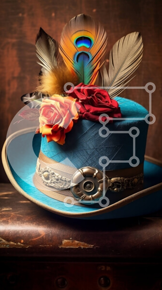 Intra Συλλεκτικό Ξύλινο Παζλ Plywood 4mm – Κομψό μπλε καπέλο με φτερό παγωνιού και λουλούδι Σε Ξύλινο Κουτί – Διαστάσεις Puzzle: 10×10 cm – 25 κομμάτια