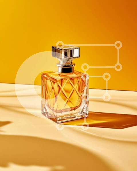Intra Συλλεκτικό Ξύλινο Παζλ Plywood 4mm – Κομψό μπουκάλι αρώματος σε ζωντανό κίτρινο φόντο Σε Ξύλινο Κουτί – Διαστάσεις Puzzle: 10×10 cm – 25 κομμάτια