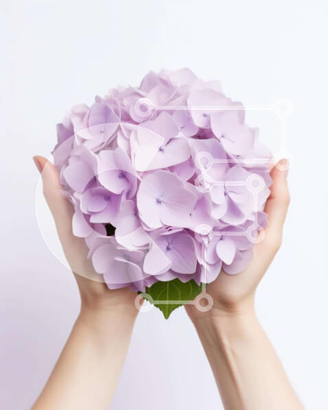 Intra Συλλεκτικό Ξύλινο Παζλ Plywood 4mm – Κομψό μπουκέτο με μωβ λουλούδια στα χέρια Σε Ξύλινο Κουτί – Διαστάσεις Puzzle: 10×10 cm – 25 κομμάτια