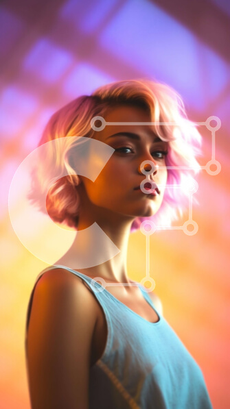 Intra Συλλεκτικό Ξύλινο Παζλ Plywood 4mm – Κομψό πορτρέτο μιας γυναίκας με ροζ μαλλιά μπροστά από ένα ζωντανό φόντο Σε Ξύλινο Κουτί – Διαστάσεις Puzzle: 10×10 cm – 25 κομμάτια